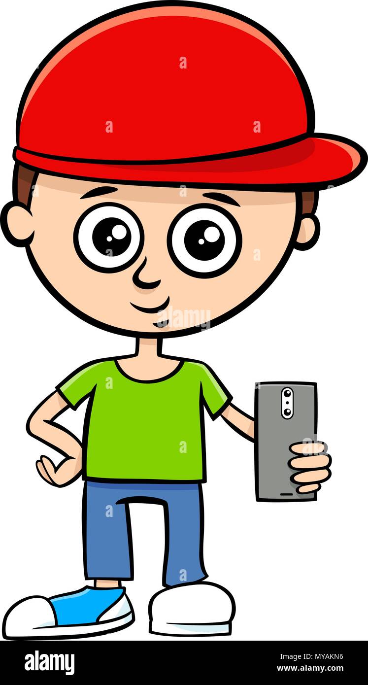 Cartoon Illustration Of Kid Boy Character With Smart Phone Device Stock Vector Image Art Alamy
