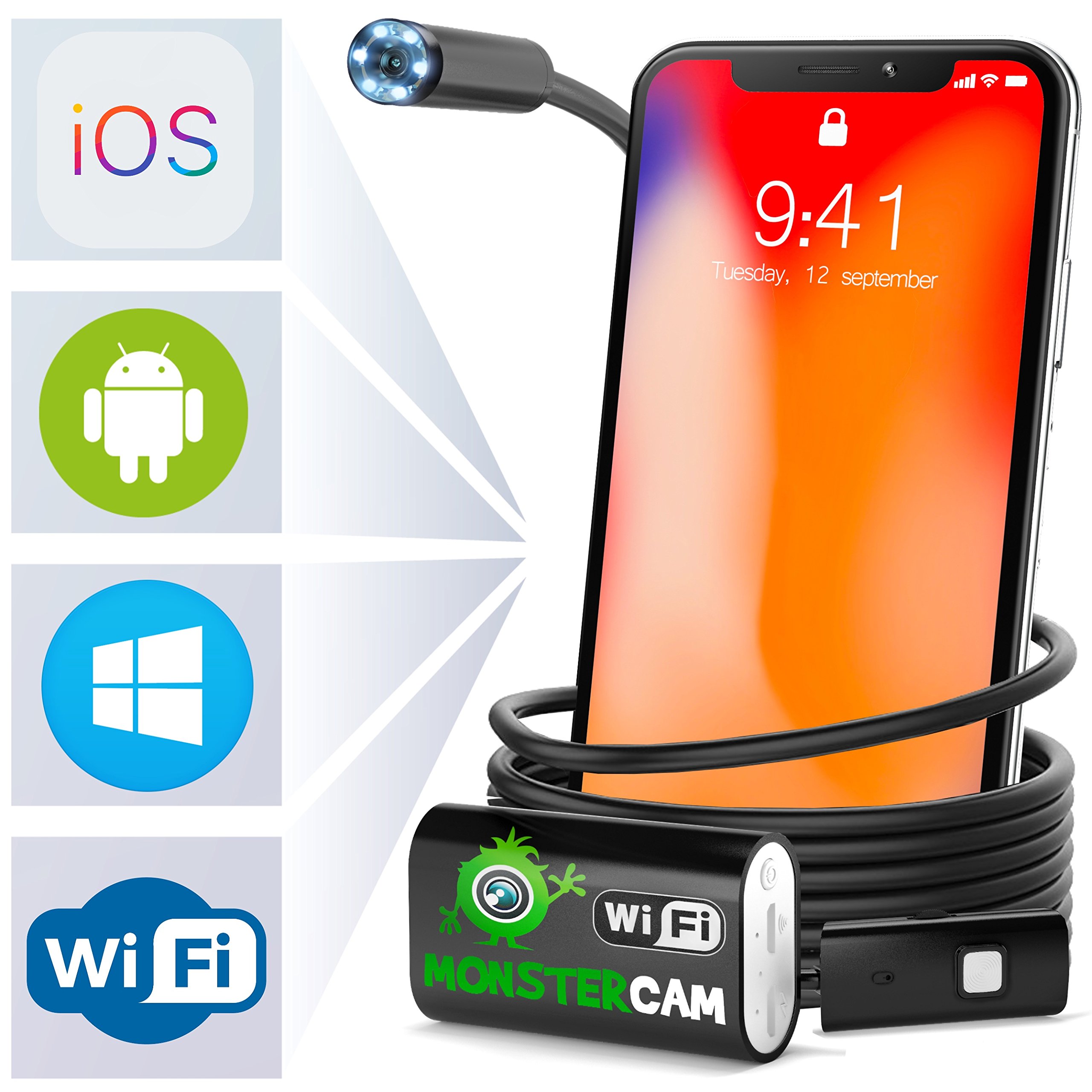 Amazon Com Sansido Endoscope Camera Wifi Endoscope Borescope Camera 2 0 Megapixels Hd 7mm 6 Leds Waterproof Snake Camera With Shutter For Ios Android Iphone 7 7plus 6 6s Ipad Pro Samsung Wifibox Endoscope 1m Camera Photo