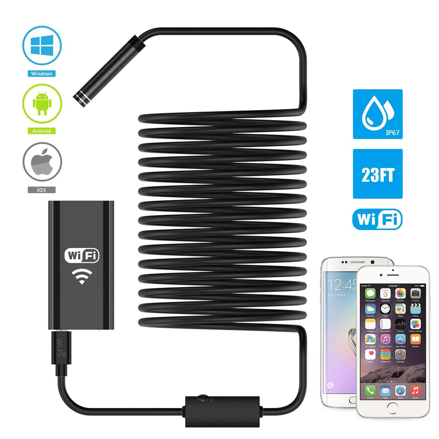 Rxment Wireless Endoscope Iphone Borescope Iphone 23ft 1200p